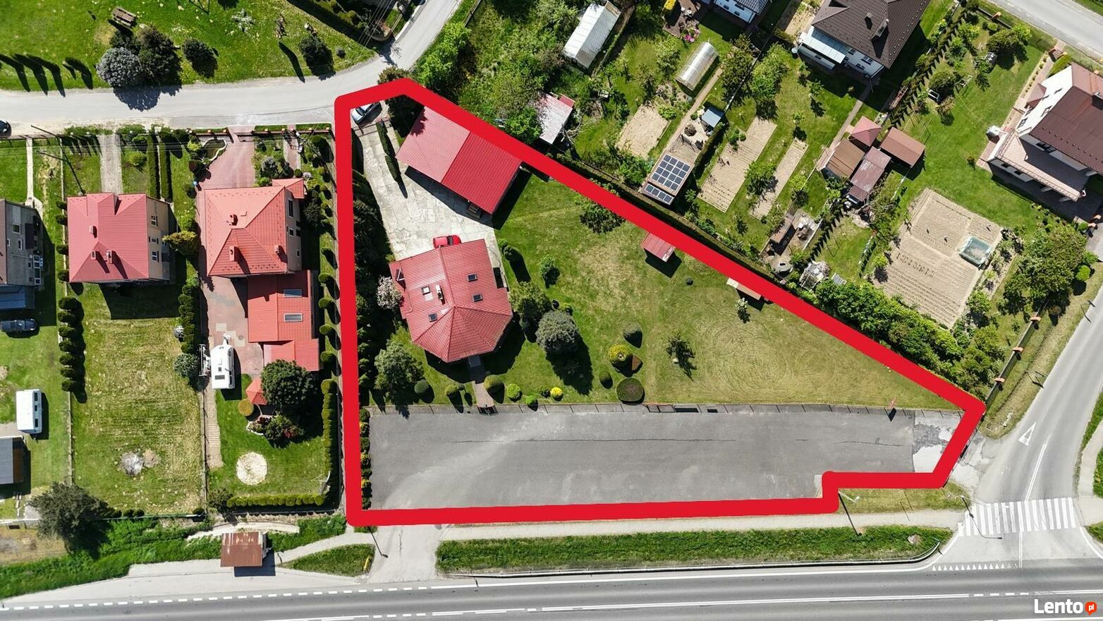 Cala nieruchomość składa się z 4 części: mieszkalnej, handlowo-usługowej, parkingu asfaltowego o powierzchni 1100 m2 oraz garażu o powierzchni 100 m2 z możliwością przebudowy.